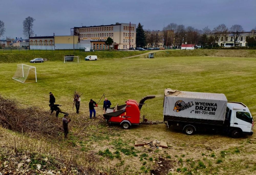 Rębak do gałęzi, rozdrabnianie na zrębkę, załadunek i wywóz. Po pracy teren jest czysty i uporządkowany.